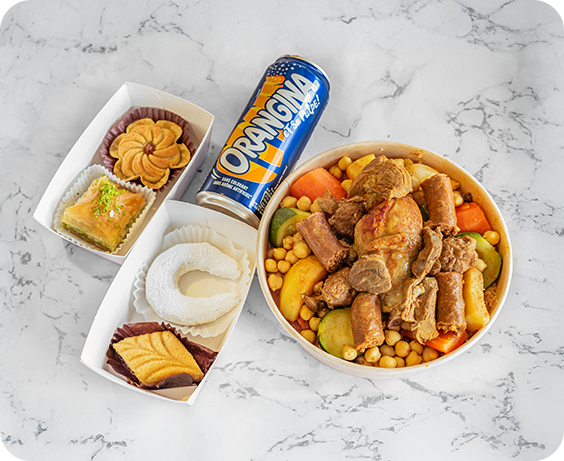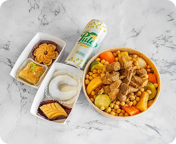 Profitez de nos délicieux plats où vous voulez ! Commandez facilement et récupérez votre couscous chaud à emporter, ou installez vous confortablement dans notre salle conviviale.